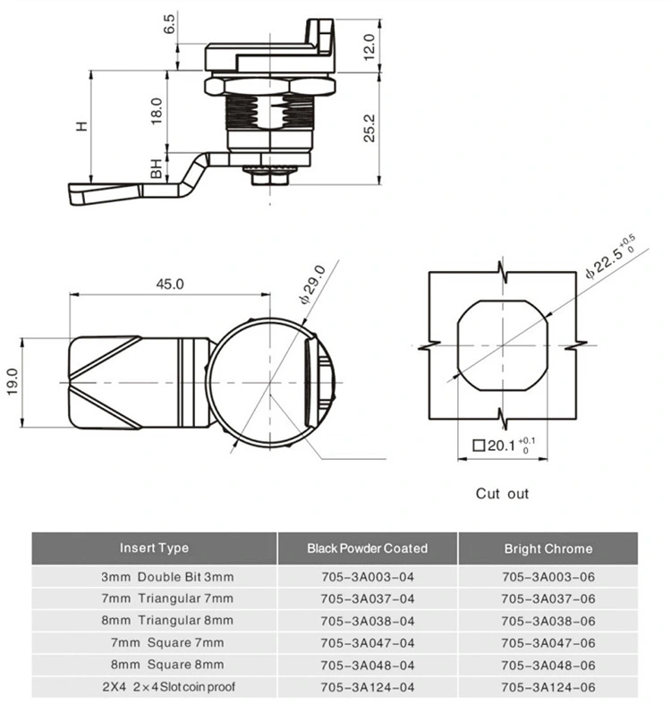 A inserção de bits dupla com a trava do trimestre de quarto é uma trava industrial comum, usada principalmente para armários, caixas elétricas, armários de distribuição, caixas de ferramentas e outros equipamentos que precisam ser trancados com segurança.